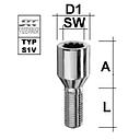 Bullone della ruota M14x1.25 Cono 60° m. Versatz SW-17 L-40 zincato